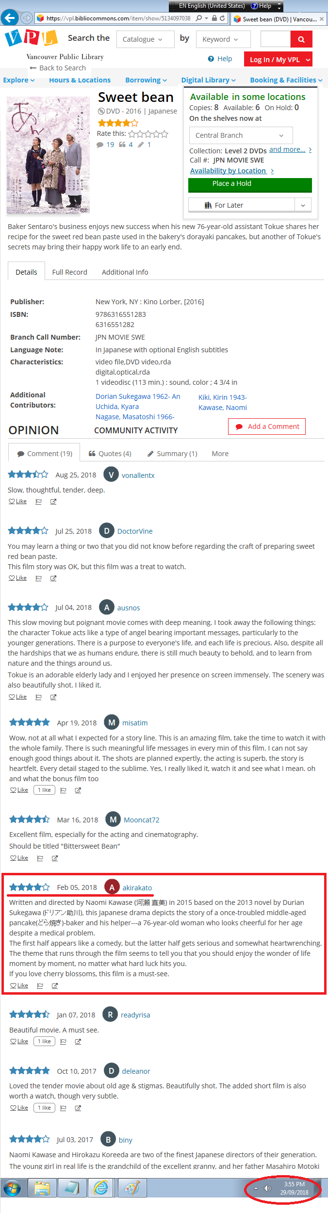 実は、僕もこの映画をバンクーバー市立図書館で観たのですよ。